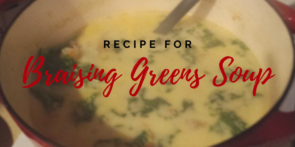 1 large bundle of braising greens, stems removed & torn to bite size pieces (we usually use kale, but you can also use Swiss chard or mustard greens)