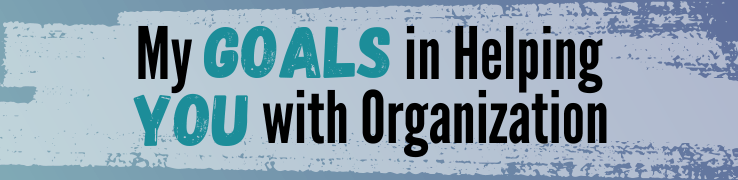 4. The Goal: To help you pare down and get things in order so they can relax and enjoy their day-to-day life without the overwhelm of clutter. Sometimes you just need someone to come along side you in a project (organizing or other) with ideas and encouragement. The beauty of it is, when you are done, you can more simply find the things you need each day, which automatically gives you more time each day.