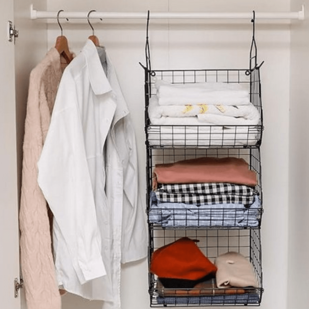 This 3 Tier Closet Organizer is another way to use the vertical space in your closet. It can be hung or sit on the floor and it perfect for items like sweaters.