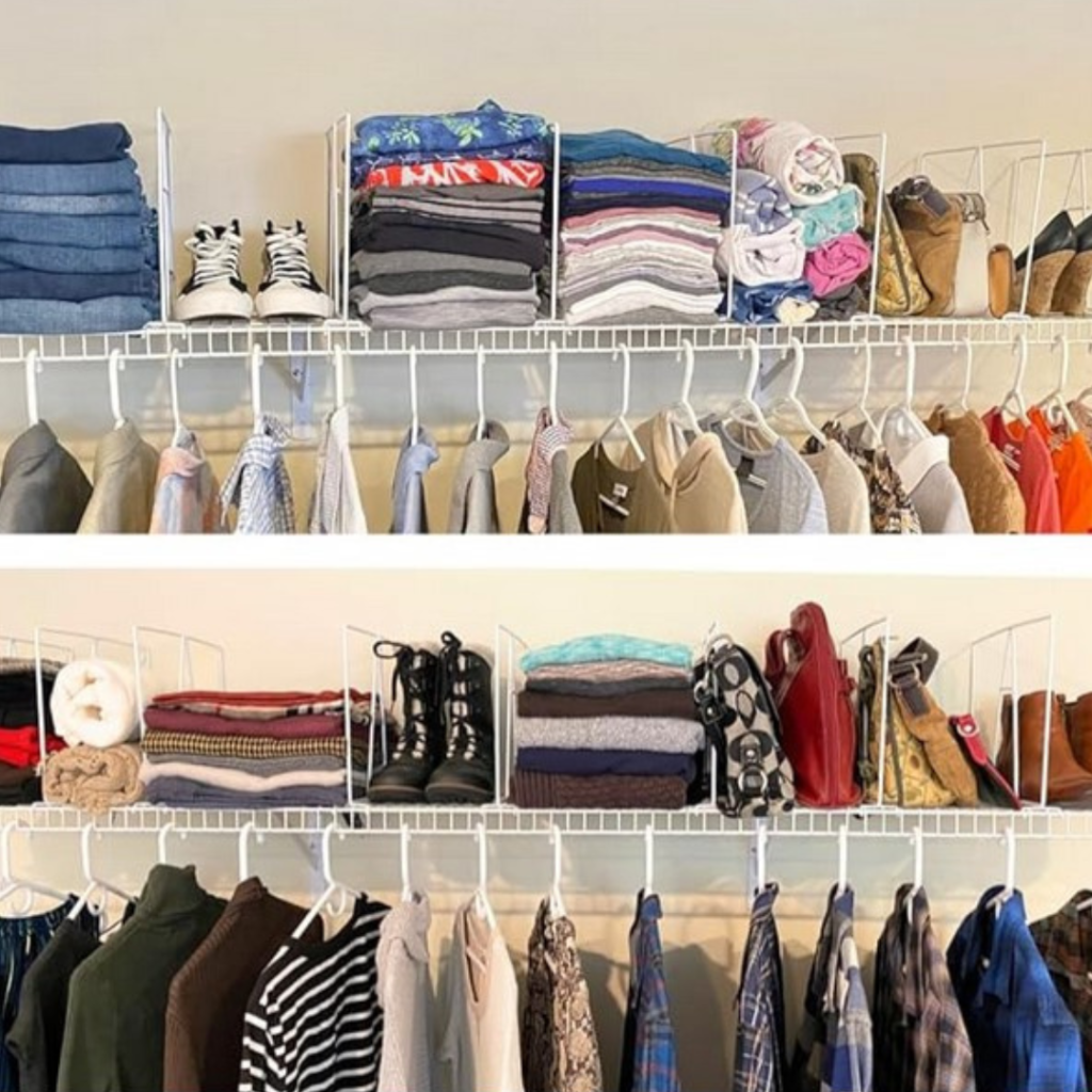 These Wire Shelf Dividers are one of my favorite closet hacks. No more falling clothes, and you can easily see what you have.