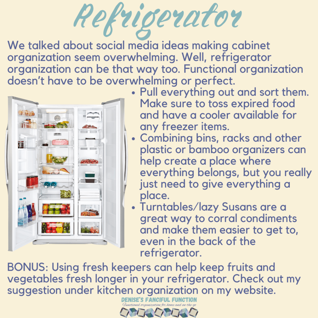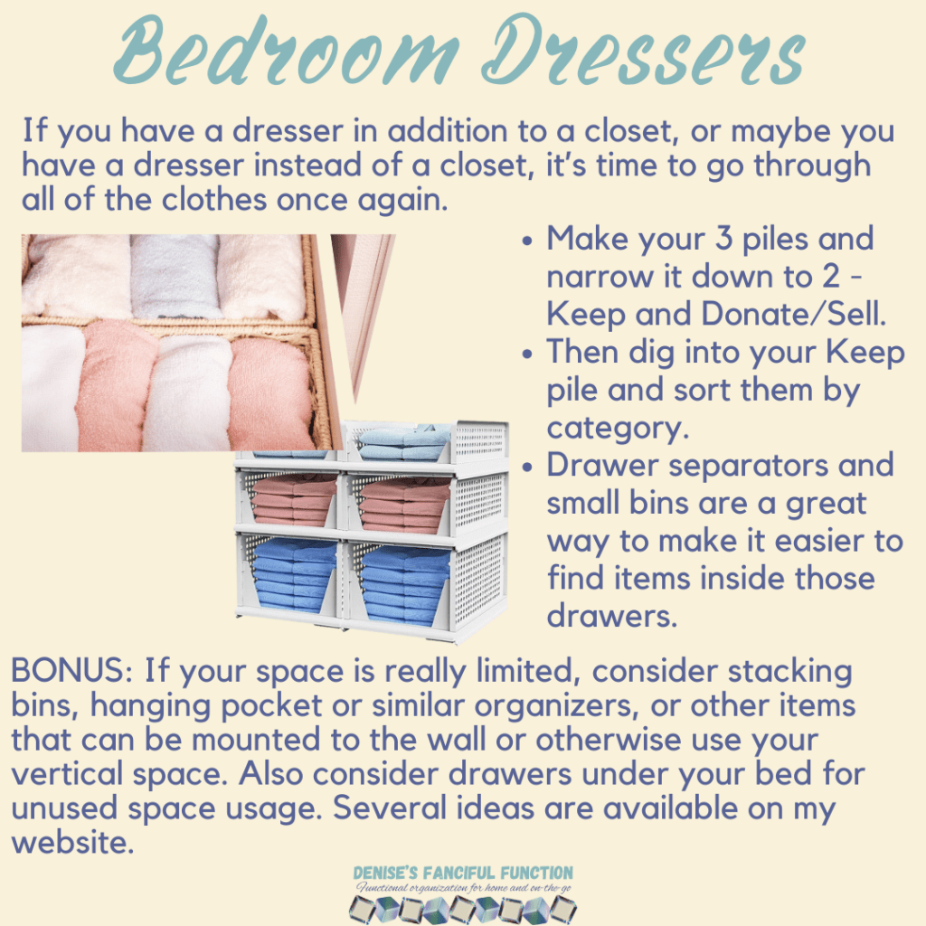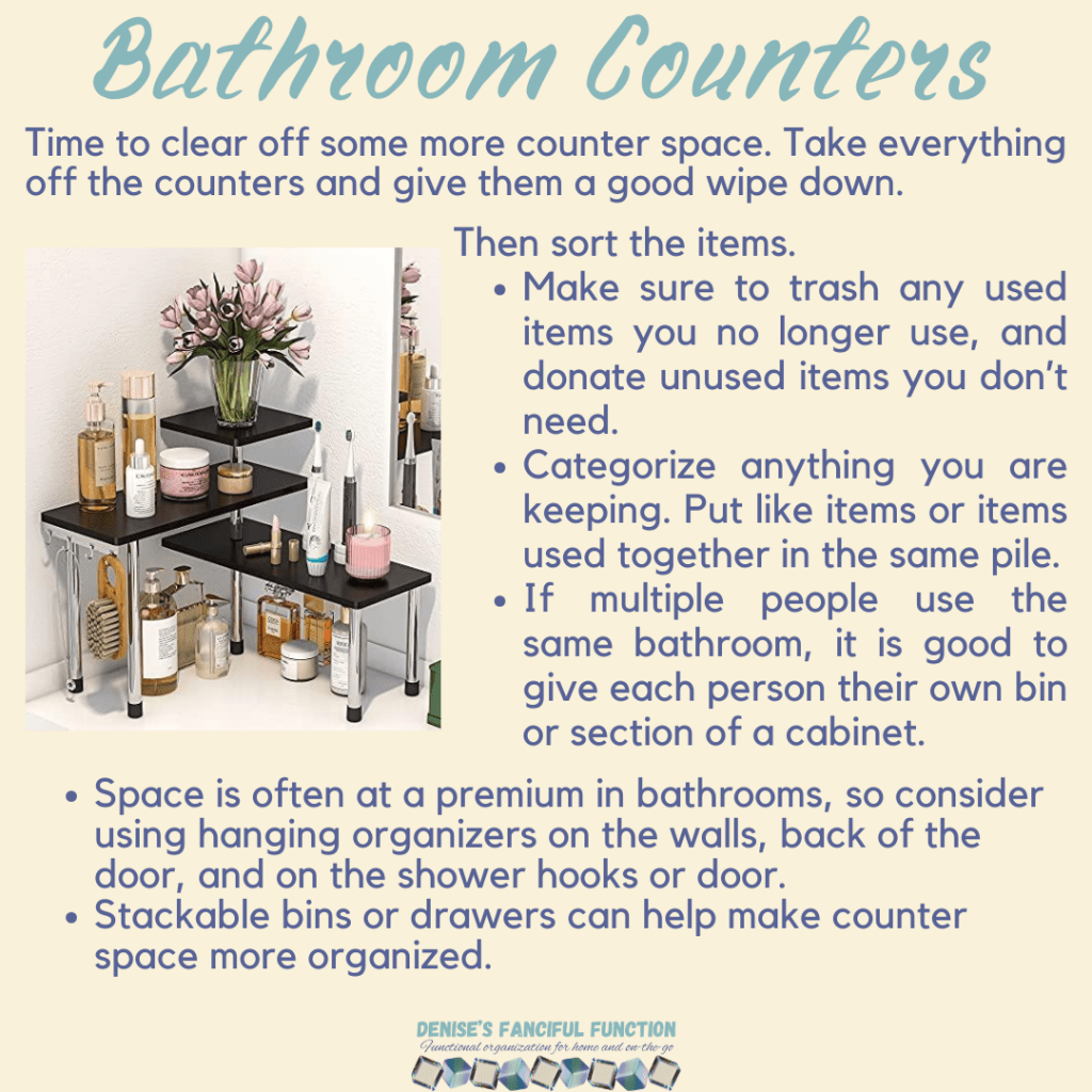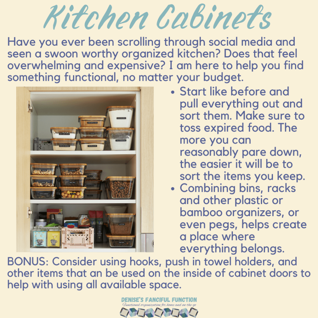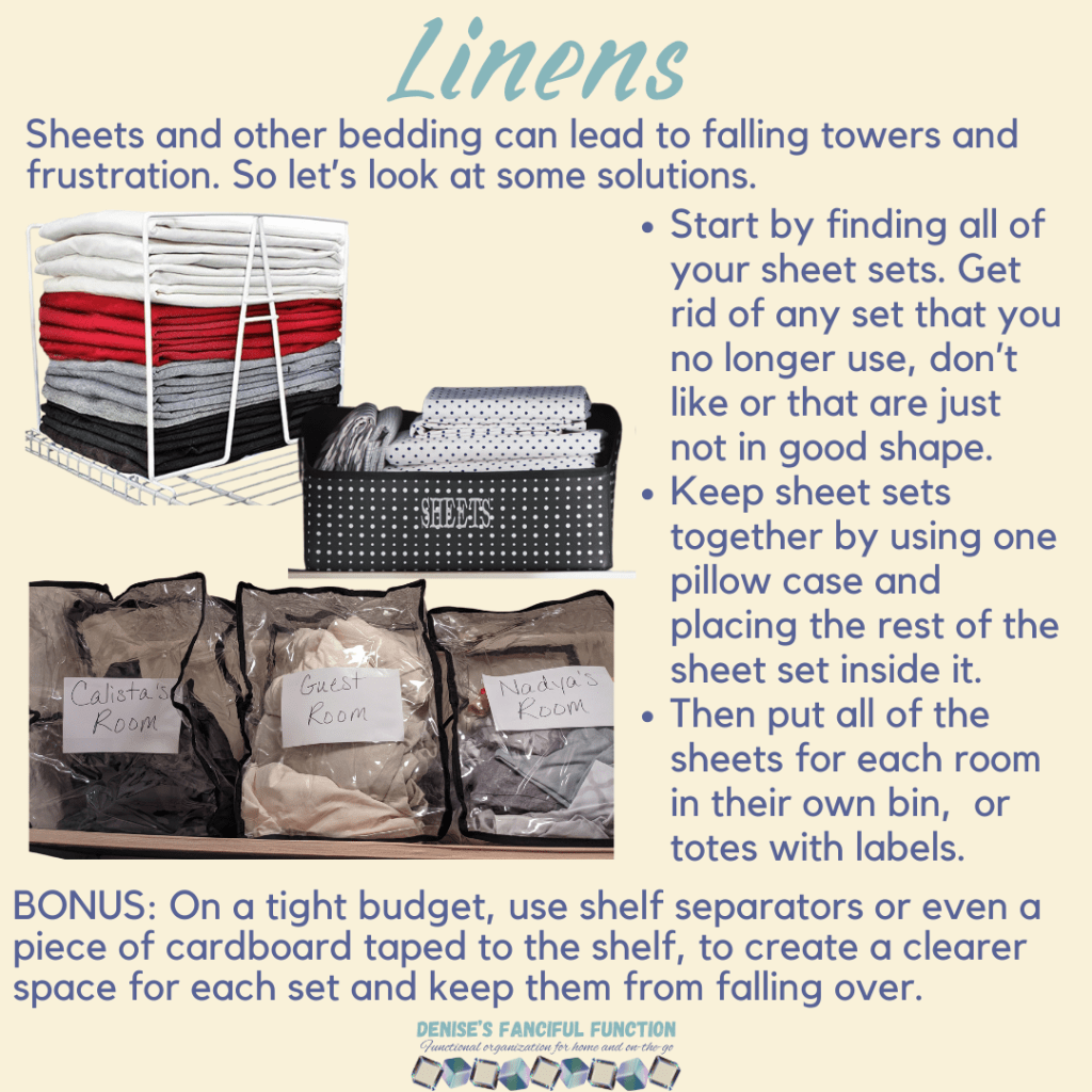 Want a quick view of the Organization Challenge we are holding in my Facebook group? Here are the basics. Want to be a part of the challenge AND be entered to win a gift certificate? Just go over to my Facebook group (https://www.facebook.com/groups/denisesfancifulfunction) and click on the Featured post for more information. Keep an eye out throughout the next couple months as I drop a space at a time for you.